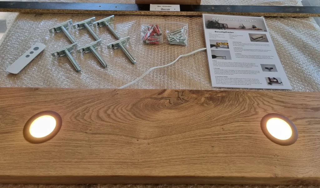 Voor een volledige uitleg over de montage van onze wandplank met verlichting, inclusief een handige video, kun je terecht op onze montagepagina.